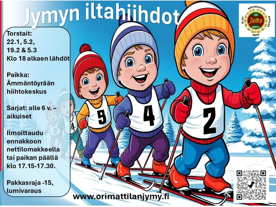 Jymyn avoimet hiihdot pidetään torstaisin Ämmäntöyrään hiihtokeskuksessa, Olympiavoittajantie 151, Orimattila.